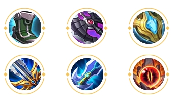 解析:中期堆叠冷却,提高技能衔接速度,利用七星光芒剑收割敌人。后期偏输出向出装,找准时机切入战场,利用七星光芒剑收割敌人。