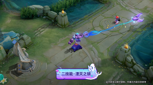 其次就是钟馗的二技能,本身二技能就是随机抓住一个敌人,而钟馗这款皮肤下的二技能似乎有着更强大的命中性,钩子也是大了不少。而且这个钩子采用的是紫色,而仙则选择了蓝绿的渐变,甚至还有着星星闪闪发光,看起来非常的不错了。
