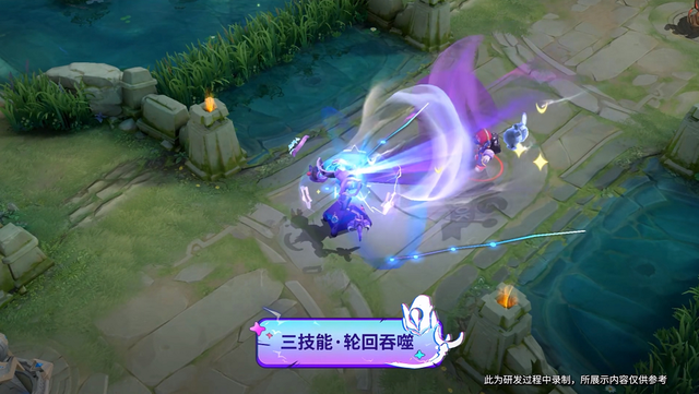 最后就是钟馗的大招,将敌人直接以漩涡的形式吸住,而且整体的光效选择了蓝色、紫色和白色,给人一种梦幻感。而且除了敌人,似乎还有着星星、月光以及各种玩偶被吸引其中,再加上周身的电光,大招似乎是娃娃机出现故障才出现的,不得不说,设计非常的新颖。