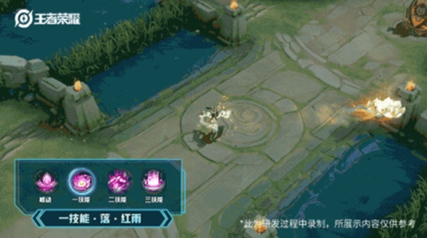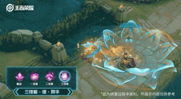 我们携手敦煌博物院,在设计中将西域服饰与敦煌及唐代特有元素进行融合尝试,勾勒千年前起舞的舞筵的展示动画,融合“不鼓自鸣乐器”、佛莲等元素的技能特效,舞步急转如风的回城特效……千年之前与千年之后,壁上丹青,天乐宛然。