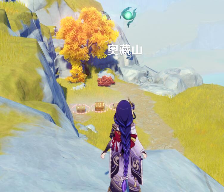 然后旁边悬崖边有个岩神瞳,还有两个风核,三个宝箱,我打不过风核着玩意,它们会飘。