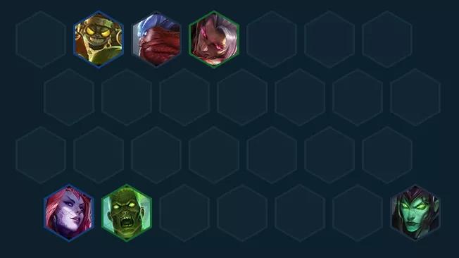 优先做大头的青龙刀,前期打工也很好用,开局要是有3龙族这把就稳冲,建议1-4提前拉人口,这样2-1就有概率出3费卡尽早的凑出3龙族。过渡推荐用婕拉+乌迪尔+腕豪+火男组成3龙2法,装备先给婕拉打工,5人口再补2斗,当然如果开局比较顺也可直接3丧尸过渡,给努努日炎打连胜。