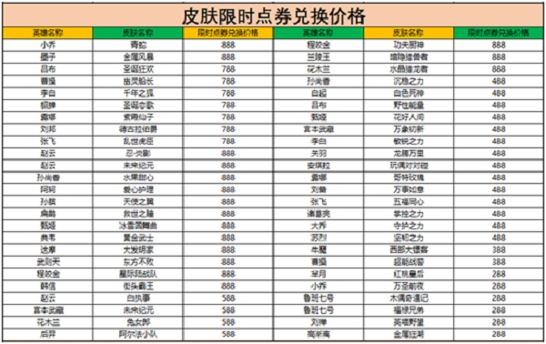 4、点券和我们充值的点券是一样的,不过他是限时的,但是能够买的东西和价格都是商城里的一样的哦,具体物价表如下: