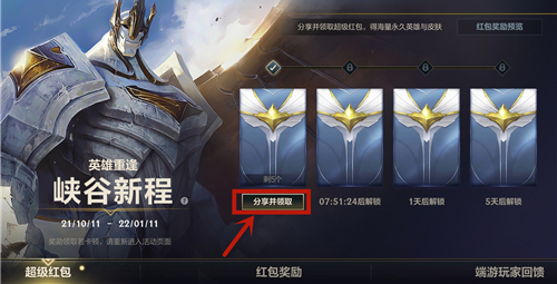 总而言之,峡谷新程红包要点分享的链接才能开出来,还要回去做任务才能拿到。