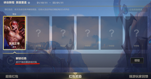 另外峡谷新程6个红包每天解锁一个。代言人直接解锁。