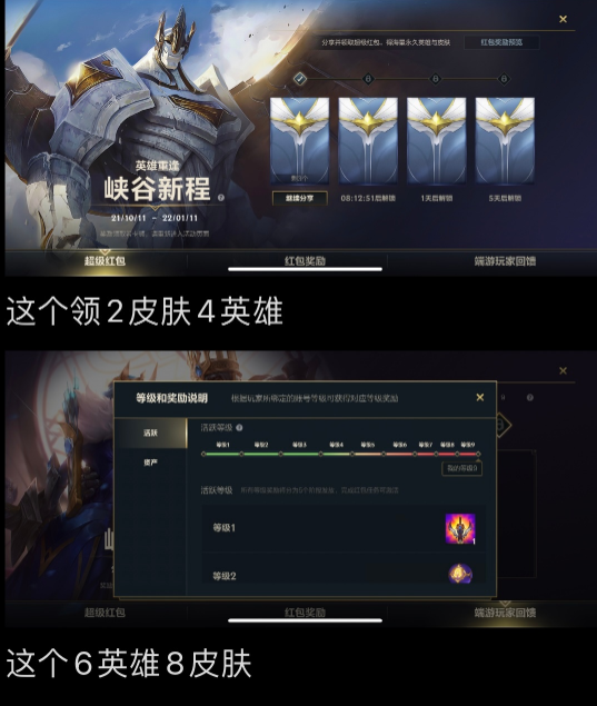 一共只能领4个英雄+2个皮肤。