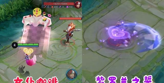 作为一款6元皮肤,在特效方面却不输史诗,对比妲己史诗品质的女仆咖啡,首先看一技能的特效,女仆咖啡的一技能特效是经典的蛋糕特效,而紫罗兰之誓则是紫色的犹如水晶般的特效。