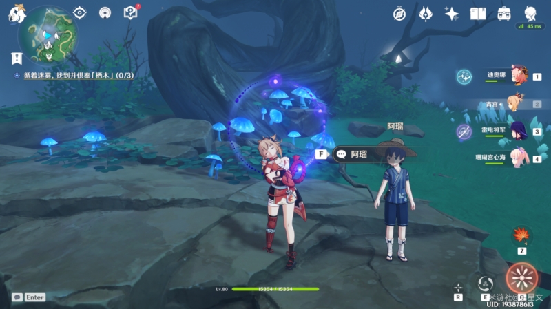 与栖木互动后,栖木抛出三个羽毛,于是旅行者开始在迷雾中寻找四处散落的羽毛。