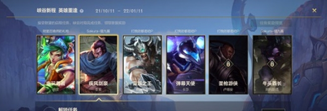 1、2021年10月11日-21年1月11日期间,玩家接受联盟的启程任务,峡谷对局完成任务,领取奖励