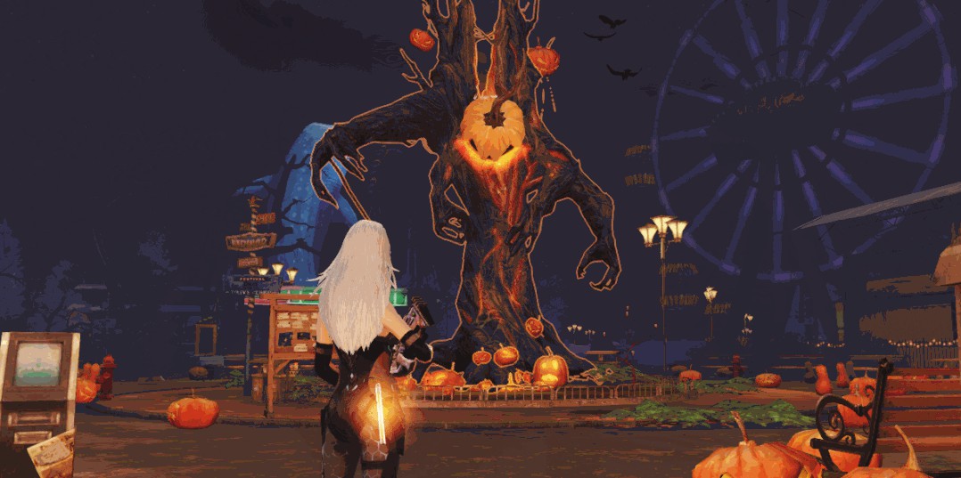 4.当南瓜树精双手砸向地面时,广场周围会掉落南瓜。