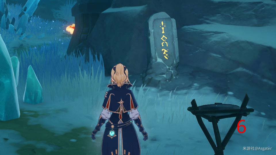 首先,这个洞窟的位置位于龙脊雪山这唯一一个七天神像的后左斜下方。其中,映入眼帘的便是一排符号,自右向左依次标记为1-8号。