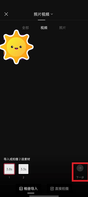 5、然后导入刚刚拍摄好的短视频,点击右下角的【下一步】;