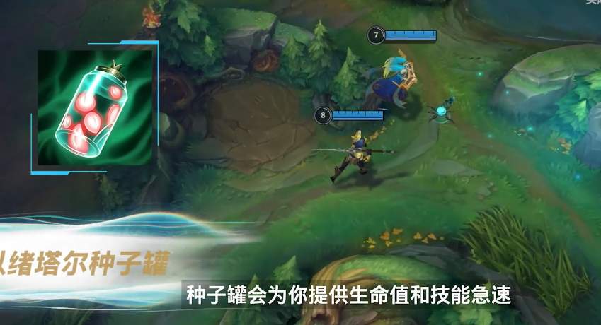 能够提供生命值和技能急速,当玩家或队友命中附近植物,将会掉落一枚只有玩家能够看见的种子,玩家可以捡起种子,将他们种在地图上的任何地方,等待三秒然后收获果实