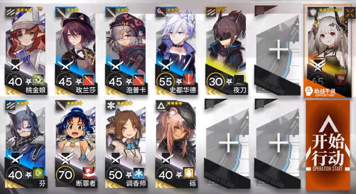 其他干员:桃金娘/极境/琴柳、常规先锋、群体近卫、常规近卫、群体治疗、单体术士(不能是点燃羊)、快速复活、工具人