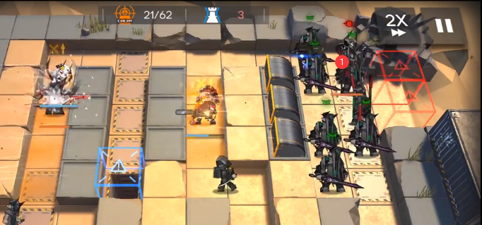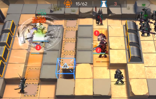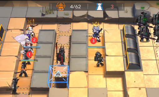 当群攻近卫打掉正面小怪后直接撤退,放萨卡兹积怨者进点。