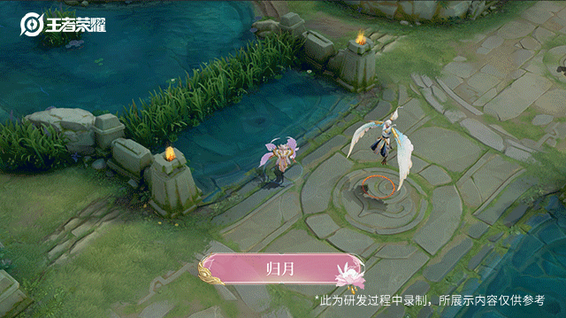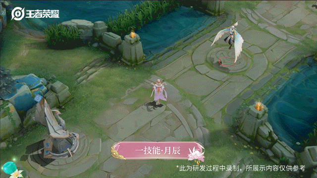 嫦娥—拒霜思的一技能特效:嫦娥向指定方向发射一颗美丽的花束,在花束上有个可爱的小兔子,可以说细节满满了。