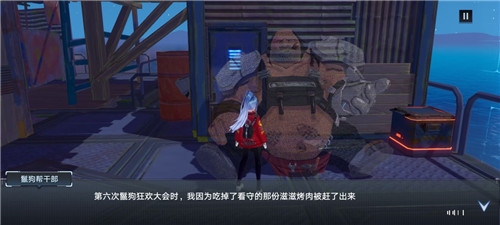 这边有一个提醒点它吃了看守的烤肉 说明之后我们可能要做一份烤肉给看守,接下来我们来到纳维亚的鬣狗基地