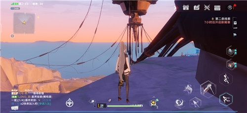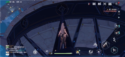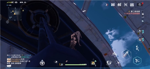 8、先点一下钩爪,然后长按喷气背包,将起飞高度拉到最高起飞(起飞后不需要再跳),接着点击钩锁(此时你会定在空中,有足够的时间瞄准),尽量瞄准墙壁最上方出钩就可以了,GIF图无法上传所以大家自己操作,并不是很难