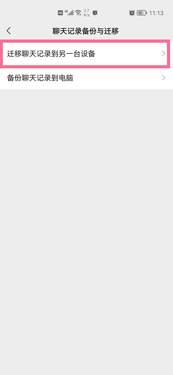 2、点击【聊天记录备份与迁移】,选择【迁移聊天记录到另一台设备】。