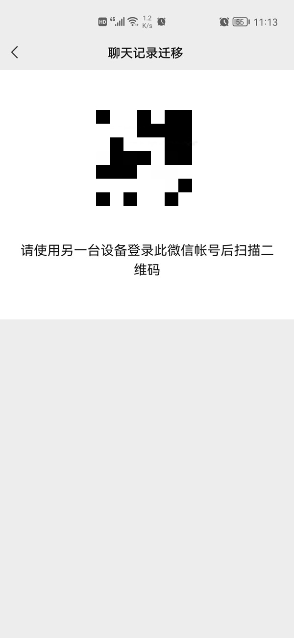 3、选择聊天记录后,使用新手机登录同样的微信帐号后扫描旧手机上的二维码即可。