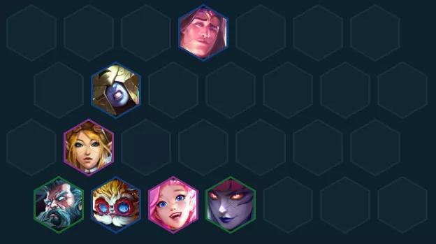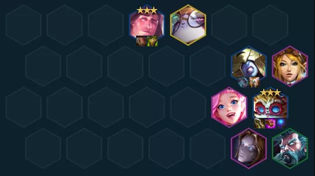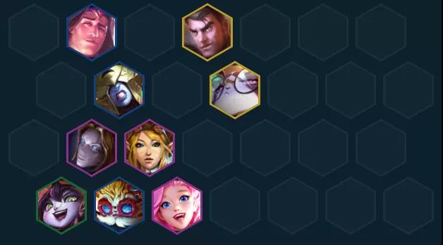 大头三了火速拉8,补上发条阵容即成型,有条件后期要给发条抓装备养双c,如果有学者转尽量上9开6学,同时D5费卡质量,有2星杰斯换时光。站位方面根据名流位扎堆,宝石和丽桑卓放第一排,其余棋子围绕大头做保护。