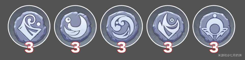 前期准备:5种不同图案的键纹各3个
