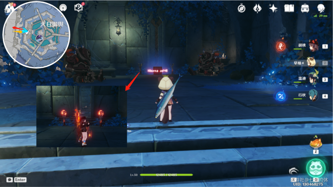 会出现一个“旋涡”,穿过会传送到大日御舆的顶端,建议带个岩主/钟离,或者温迪/万叶。到顶端后获得隐藏成就:阴阳割昏晓。与阿倍良久对话,获得任务道具「神舆之辔」!这个道具在是罪影系列的【隐藏世界任务:法厄同们全跳舞】中最后所需要的任务道具。