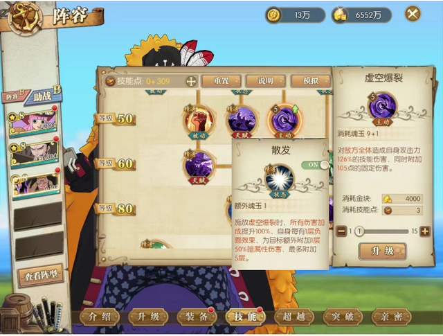 ④虚空爆裂,十费全体,提高自身伤害加成以及属性伤害,最高250%。越打伤害越高。就是魂玉消耗太多了。