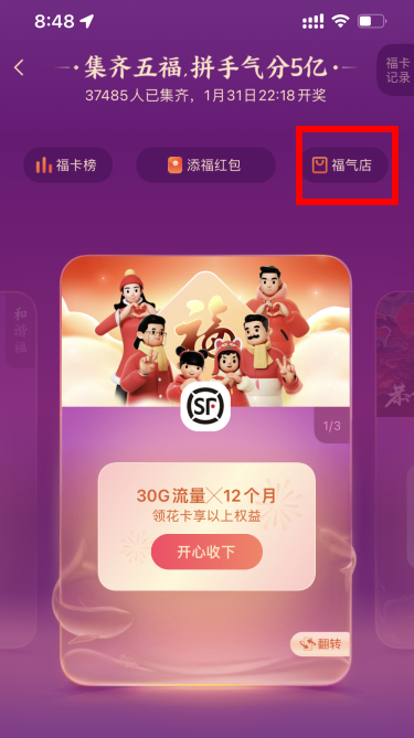 3,进入之后就可以很明显的看到【福气店】,点击进入就可以了;