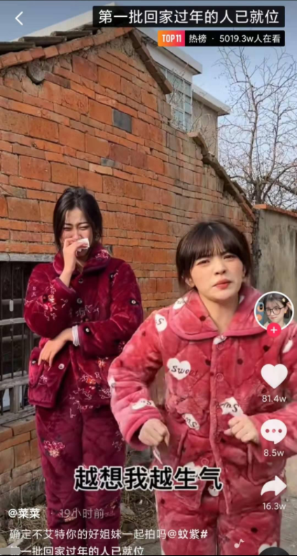 抖音热门话题,指已经放寒假的大学生们,过年前是时尚达人,回家之后就会变回村口的大壮,小花,这种fashion与土气的反差视频引起了很多网友的模仿,在这个话题下,你可以看到大学生的传家宝花棉袄,甚至可以看到他们大刀阔斧地杀鸡壮举。