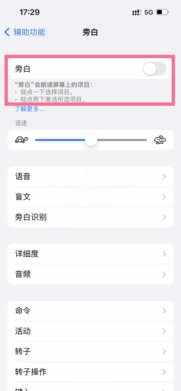 苹果手机上的VoiceOver也就旁白,是专为视力障碍者设计的辅助功能,在开启后,可以阅读手机屏幕上显示的文字。那么这个旁边功能怎么关闭呢?下面就和小编一起来看看吧。