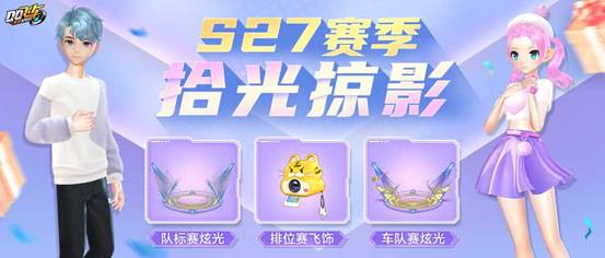 S27车队赛专属炫光:本赛季车队最高段位达到铂金段位且个人车队赛完成20场,可获得S27车队赛炫光(30天);本赛季车队最高段位达到钻石段位且个人车队赛完成30场,可获得S27车队赛炫光。