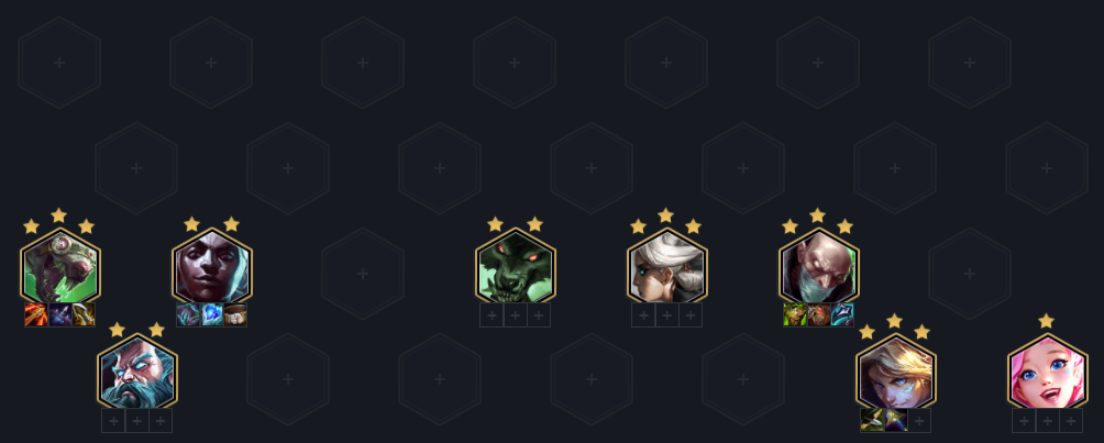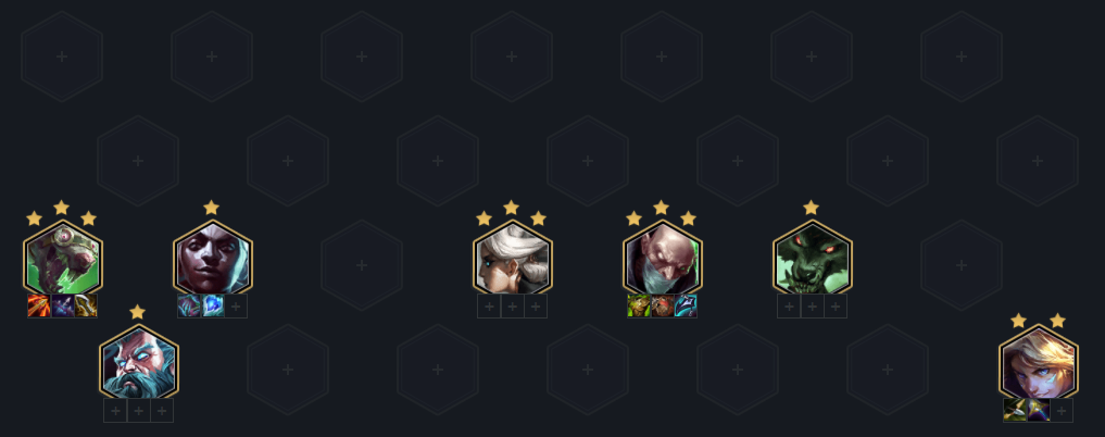 这套阵容的策略的是前期连败攒经济后启动找阵容低费三星,二阶段不升级,吃3约德尔打前期连败,不卡经济的同时抓一费体系牌,在不影响连败的情况下上手里的二星一费体系牌,保证自己五连败到打石头人。