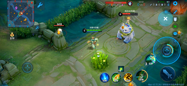 2技能:飞向指定方向的草丛,对周围的敌人造成伤害,对友军则回复血量。