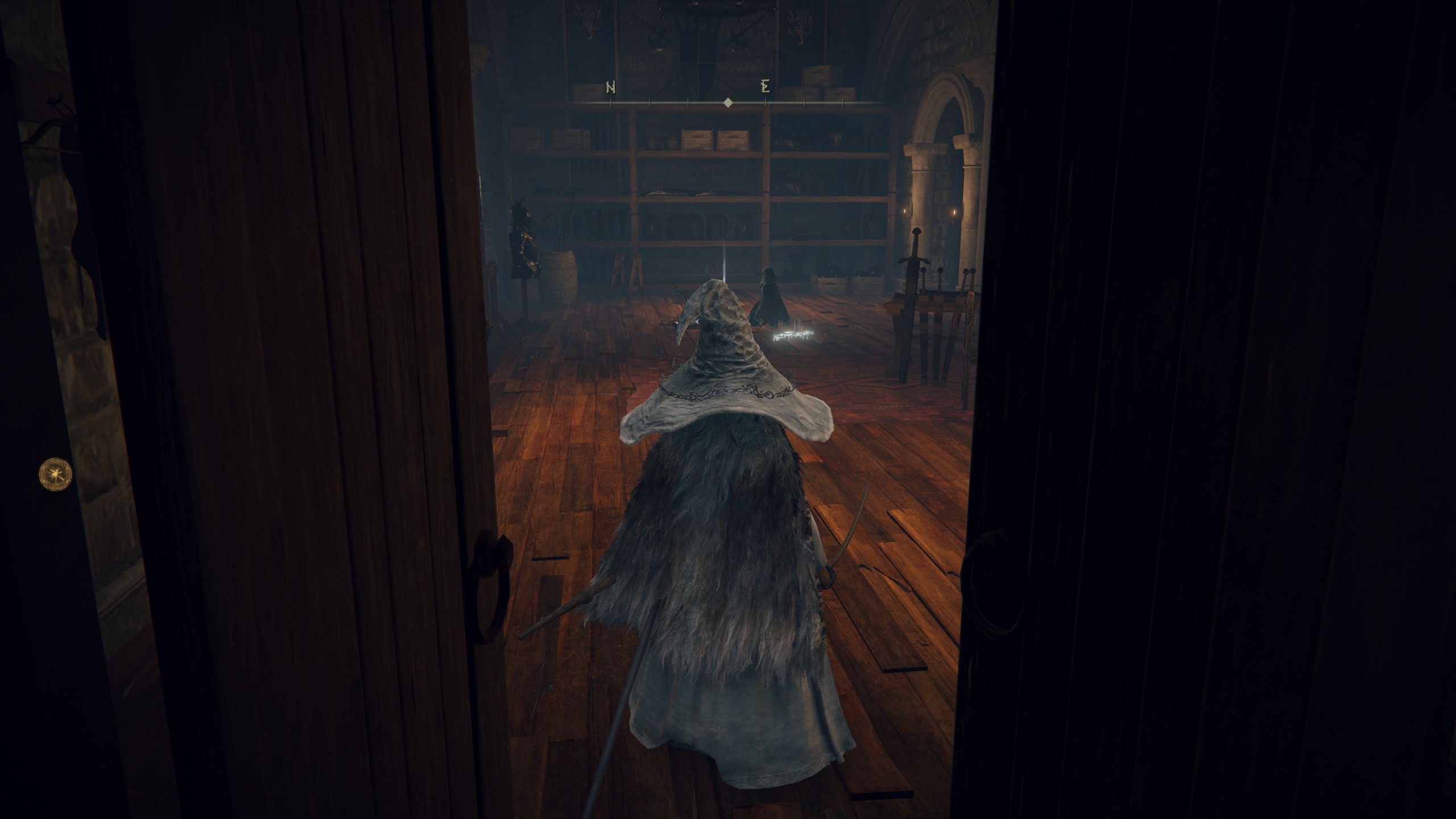 在赐福休息后,D和死眠少女菲雅都消失。最后在铁匠房间同一层的内侧屋里发现D骤死,拾取道具后菲雅消失。此时可以获得【D的铃珠】以及【D的一套衣服】。可以选择把【D的一套衣服】交给地底世界的希芙拉河导水桥Boss门口的【D的弟弟】,也可以选择不交。