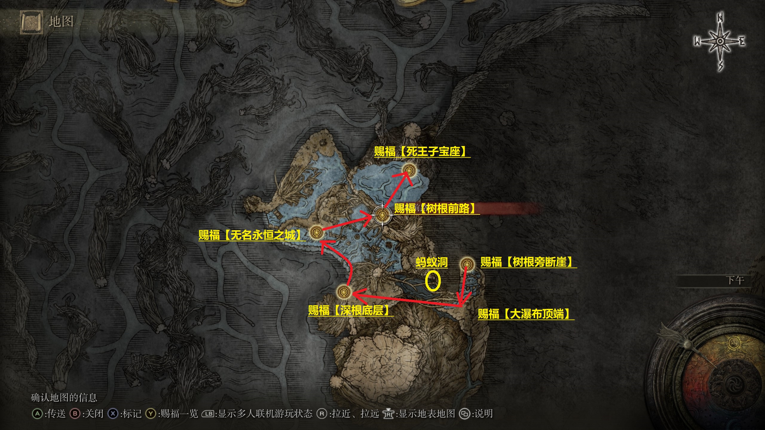 随后从导水桥Boss战场地瀑布下的石棺或从癫火封印门口进入【深根底层】,具体路线参考前文的【重要地图进入方法】章节。一路走到最深处,上树根走到赐福【树根前路】,进入深处Boss战。这场Boss战是几个杂鱼,打完之后在传送门旁边见到菲雅。