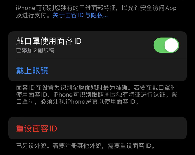 1、Face ID支持戴口罩面部解锁;(仅支持iPhone 12、13系列)