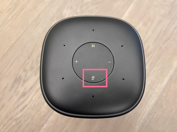1、在音箱顶部按键区找到禁用麦克风键。