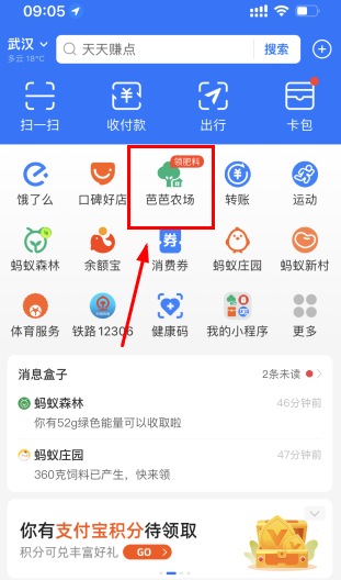 1,打开支付宝,点击【芭芭农场】进入;