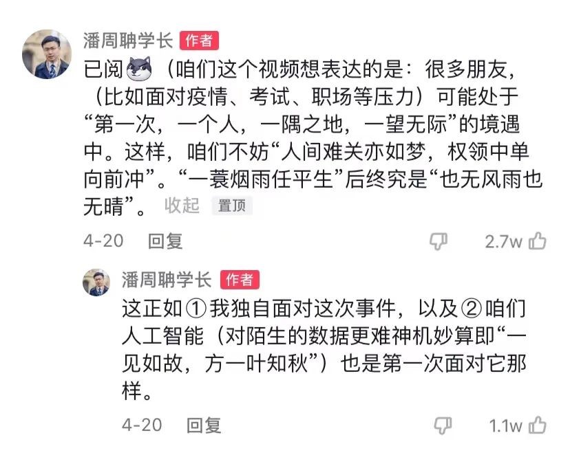 2、作为学霸存在,这些题目对他来说都是小意思了,所以说大家也将潘周聃称之为作业救星,频繁的出现在评论区当中为广大网友批改作业;