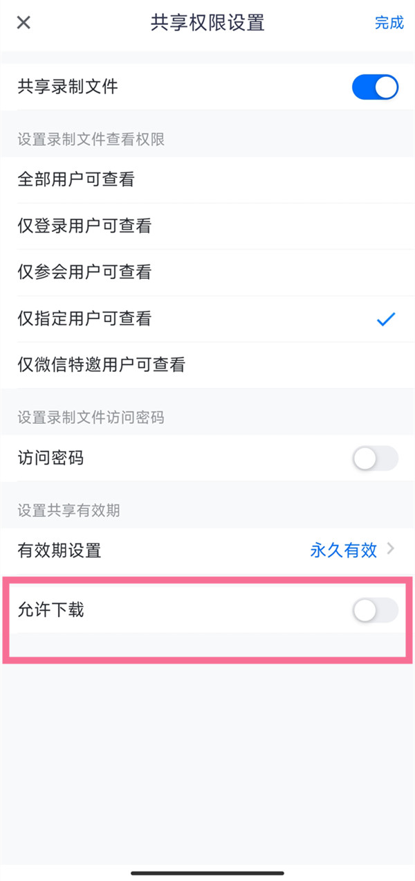 注:下载云录制视频,需要会议主持人开启了下载权限,且自己拥有录制文件查看权限。