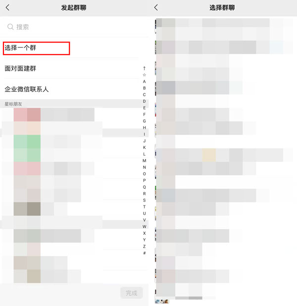发起群聊找回群方法:当我们在聊天界面找不群聊的时候,只要我们没有主动退出群,就可以打开微信界面,点击右上角的【+】按钮,选择【发起群聊】选择,点击【选择一个群】选项,就会显示之前加入的所有群,只要选中就能聊天了。
