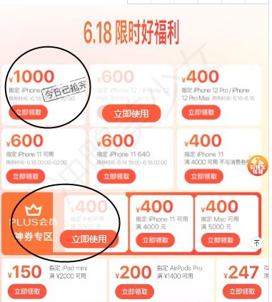 而在去年的618,iphone 12 pro的话,可以通过领一张400券,然后叠加plus会员专享券-400,在原价8499的基础上直降800,入手价只要7699元。