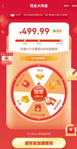 小编前几日在拼多多现金大转盘里提现100邀请了不到10个人就成功了,也有的小伙伴邀请了不到5个人,当然也有的邀请了几十个,这个都是不好说的。