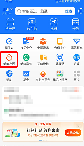 1、打开手机上的支付宝app,点击进入【蚂蚁庄园】中;