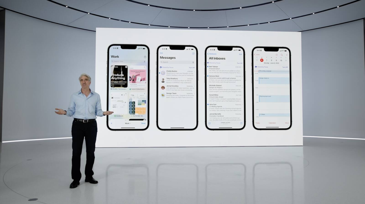 苹果的焦点(Focus)功能也扩展到锁定屏幕,支持绑定照片和小部件,将锁定屏幕与相关设置相匹配。焦点功能可以过滤 Safari 中的标签组、信息中的对话以及日历中的事件,也为开发人员提供了新 API。