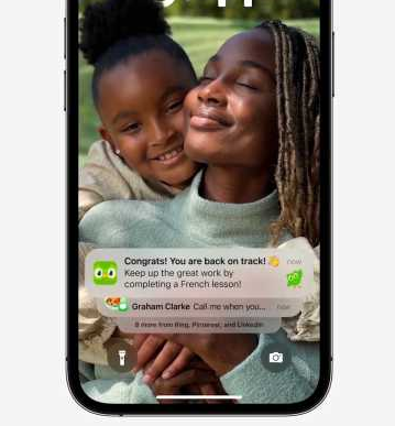 为了秀出壁纸、展示小组件,通知自然不能像往常一样铺满全屏幕。全新的通知列表被收纳、叠放在了底部,需要查看时点击即可。