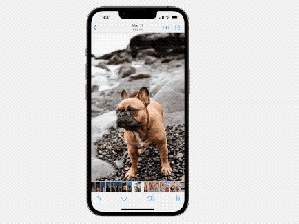 说到照片修改,iOS 16 有一个功能着实惊艳到了我,你可以长按照片的主体(比如小狗),直接把它拖动到其他 app 中发送,抠图只在一瞬间。