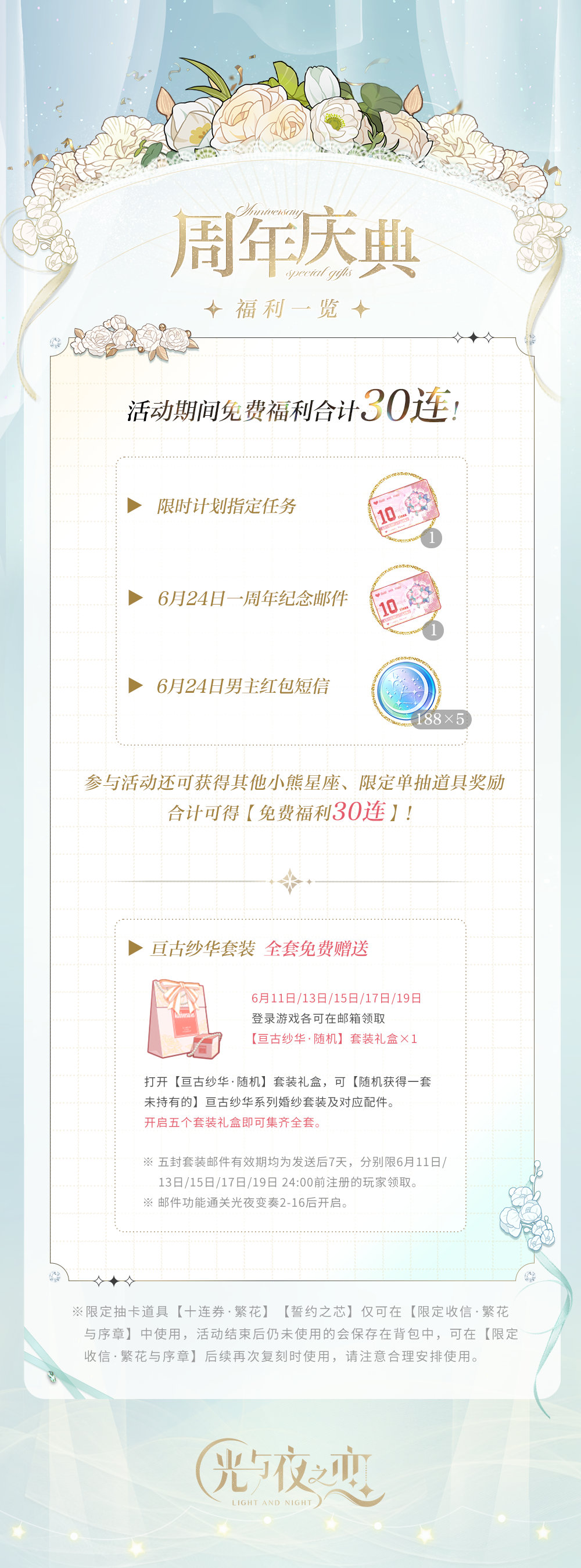 > 6月24日一周年纪念邮件【十连券・繁花?1】