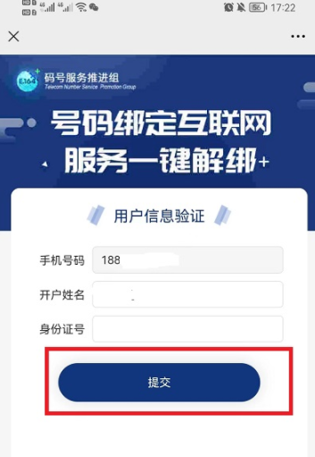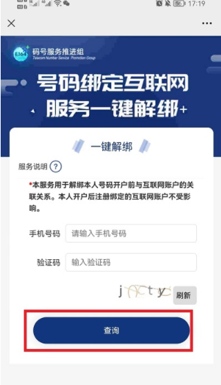 2、随后就会进入到解绑步骤中,输入自己的身份证办理的手机号码去进行查询;